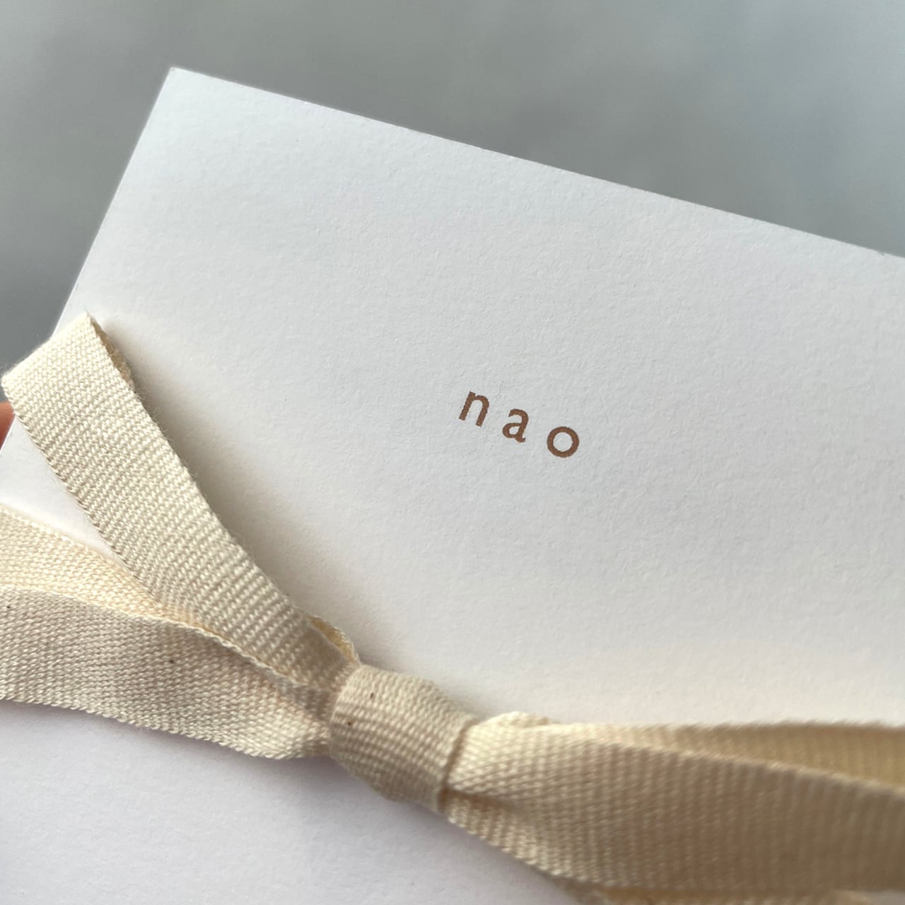 表紙はシンプルなデザインに、ベージュのナチュラルなリボンを巻いて。