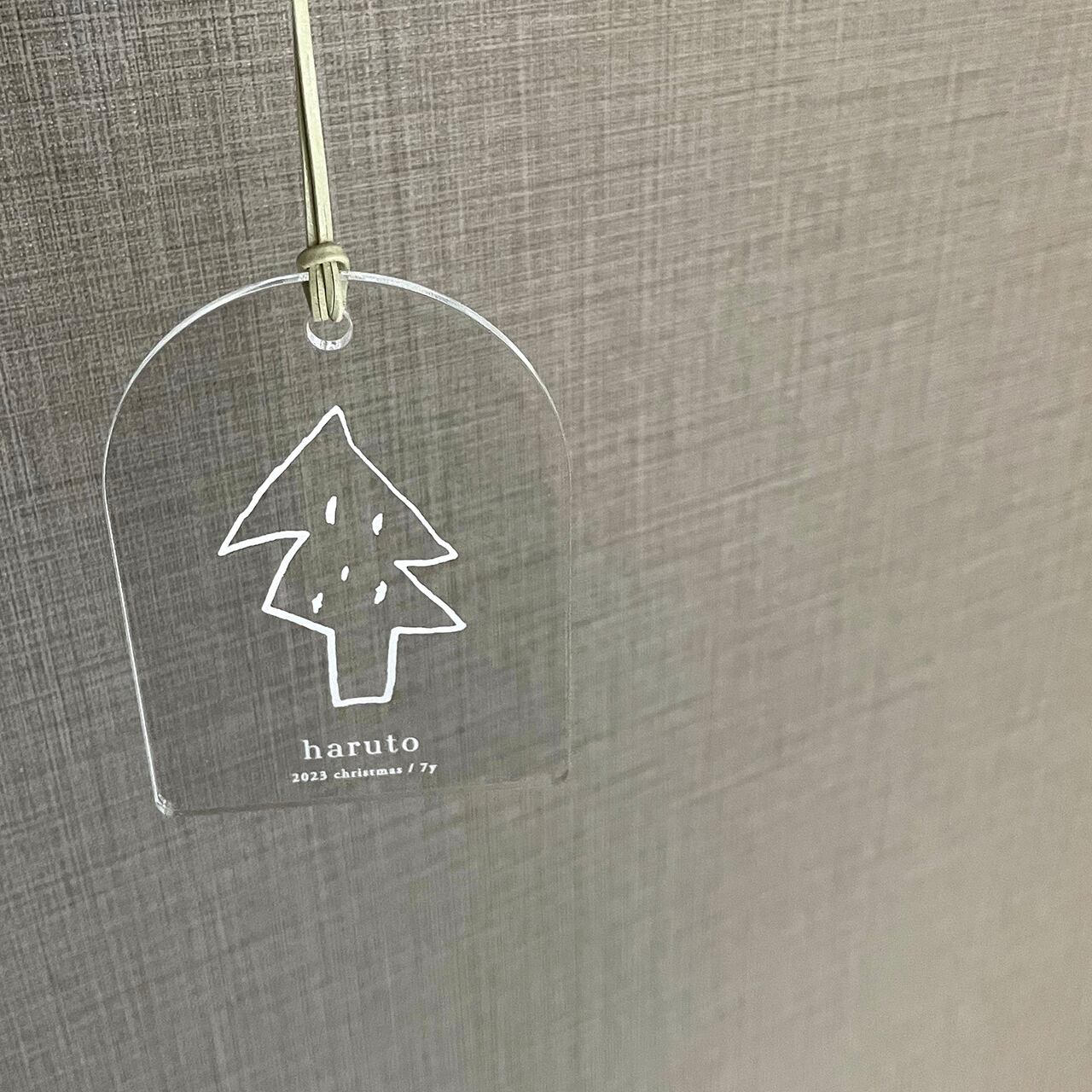 可愛いお絵描きとお名前、My first Christmasなどお好きなひとことをクリアなアクリルオーナメントに仕上げます。